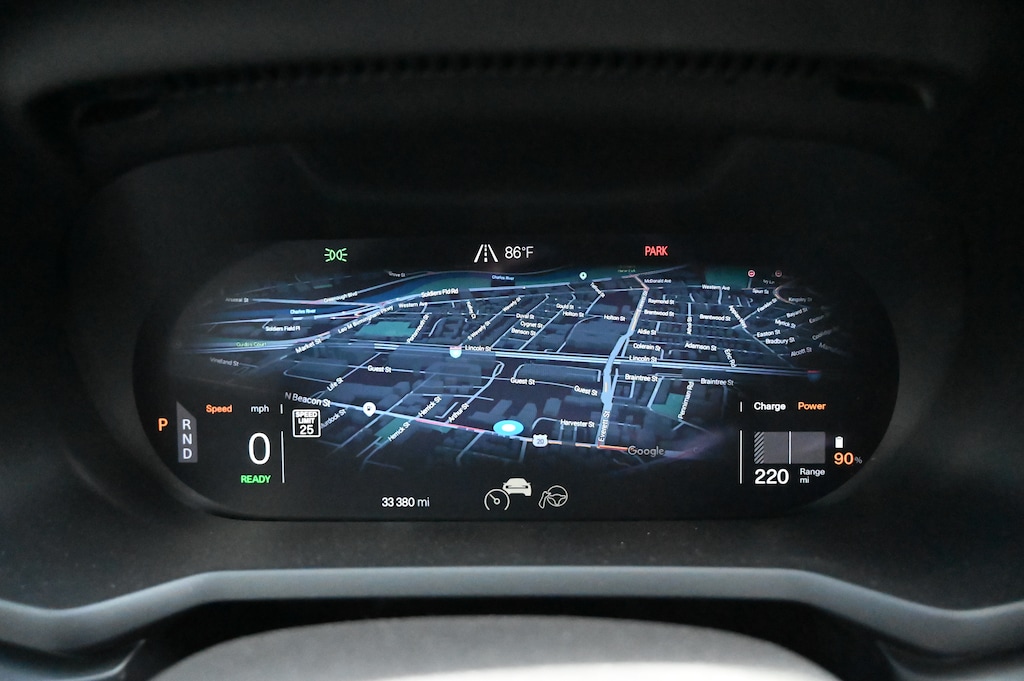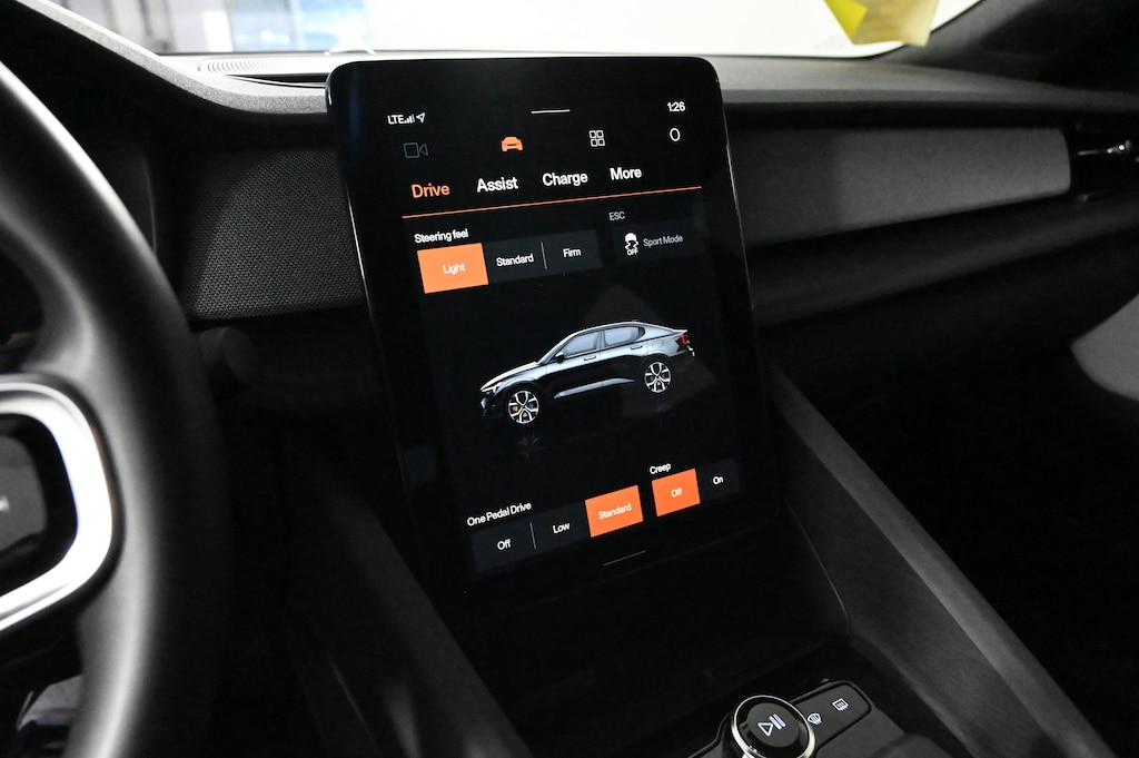 - Plus Package — Heat pump, panoramic glass roof with projected Polestar symbol, Harman Kardon 13-speaker premium audio, heated front and rear seats, heated steering wheel, wireless phone charging, advanced air filtration