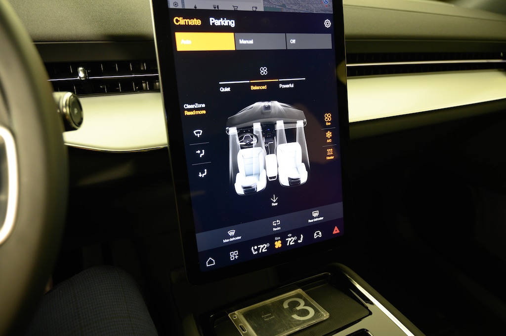 - Technology & Comfort — Panoramic roof, Google built-in infotainment, 14.5" center display, 9" driver display, and sustainably sourced Wool upholstery that balances eco-friendly craftsmanship with premium Scandinavian comfort